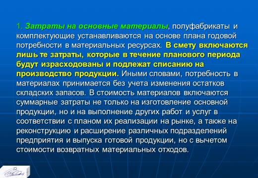 1. материалов и выполняемых услуг, израсходованных в процессе производства;