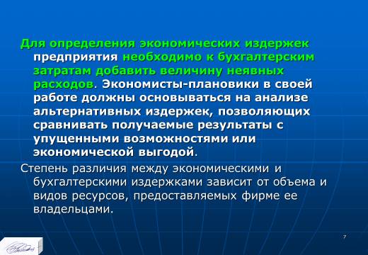 Тема № 7 «ПЛАНИРОВАНИЕ ИЗДЕРЖЕК И РЕЗУЛЬТАТОВ