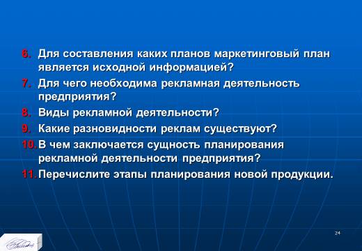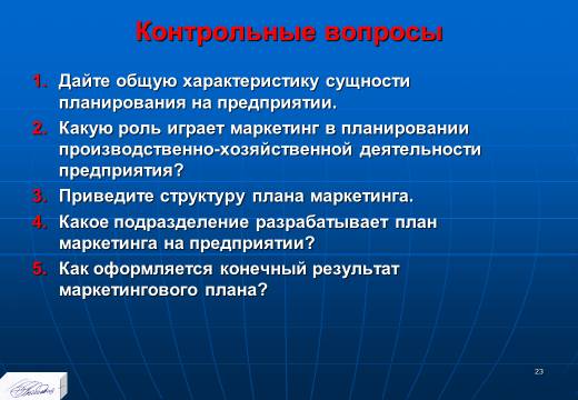 Планирование маркетинговых мероприятий. Слайды, тесты и ответы