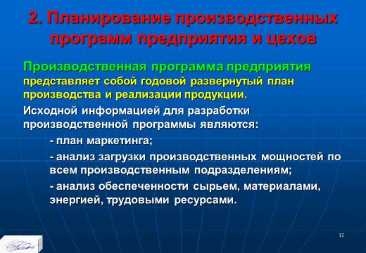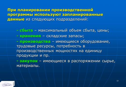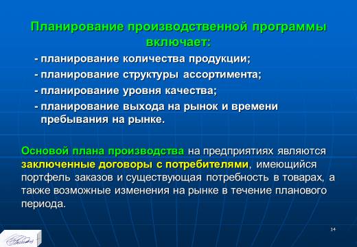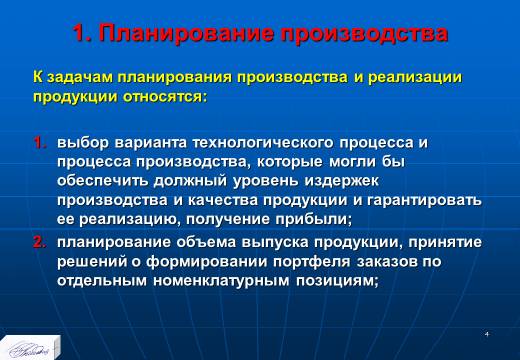 «Планирование производства и сбыта продукции» лекция в слайдах с тестами