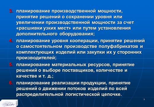 2. планирование объема выпуска продукции, принятие решений о формировании портфеля заказов в целом по всем номенклатурным позициям;