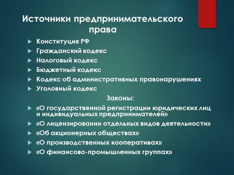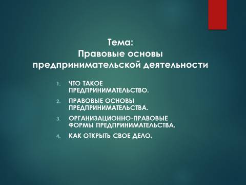 Правовые основы предпринимательской деятельности. Лекция в слайдах, тестах и ответах