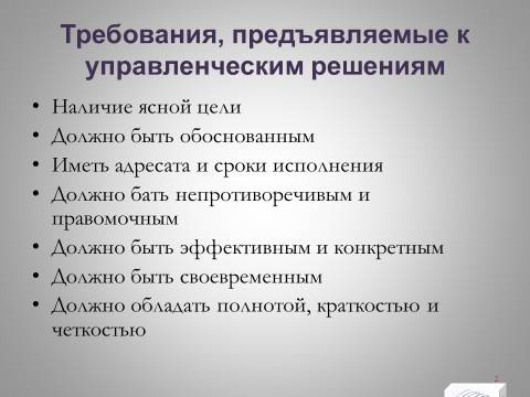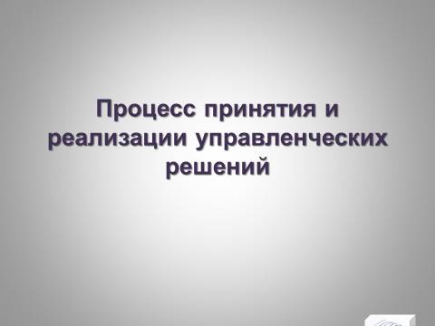 Процесс принятия и реализации управленческих решений. Лекция в слайдах, тестах и ответах