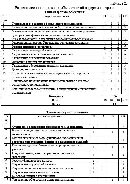 Рабочая программа дисциплины «Финансовый менеджмент на предприятии»