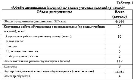2.1. Объем дисциплины (модуля) в зачетных единицах с указанием количества академических часов, выделенных на контактную работу обучающихся с преподавателем (по видам занятий) и на самостоятельную работу обучающихся