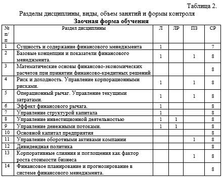 Рабочая программа дисциплины «Финансовый менеджмент. Экономическая безопасность»