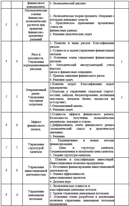 Цель освоения дисциплины состоит в формировании у студентов навыков по практическому применению теоретических знаний основополагающих теорий финансового менеджмента, а также системы основных методов управления различными аспектами финансовой деятельности хозяйствующих субъектов, умений разрабатывать варианты управленческих решений, обоснования их выбора на основе критериев эффективности и возможных последствий принимаемых решений.