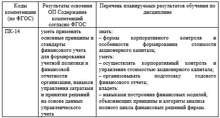 Дисциплина «Корпоративные финансы» структурно входит в профессиональный цикл дисциплин. Согласно Федеральному государственному образовательному стандарту программа ориентирована на подготовку специалистов со знаниями экономического поведения фирмы в условиях перехода к рыночным отношениям: смены форм собственности, формирования новой среды предпринимательства и его организационно-правовых форм, рыночной конкуренции.