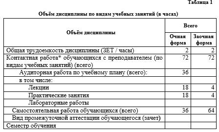 Общая трудоемкость (объем) дисциплины (модуля) составляет 2 зачетных единицы (ЗЕ), 72 академических часов.