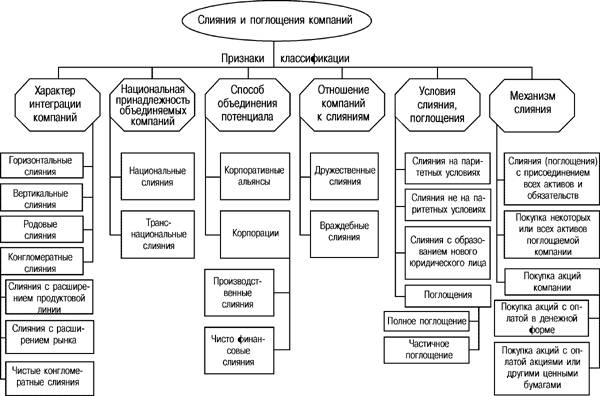 Классификация основных типов слияний и поглощений компаний
