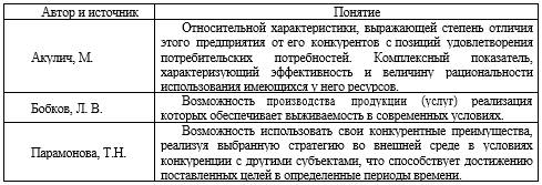 Таблица 1.2 – Анализ понятия конкурентоспособность