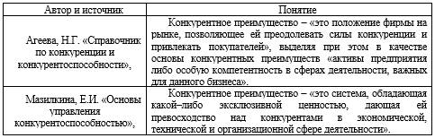 Таблица 1.3 – Анализ понятия конкурентные преимущества
