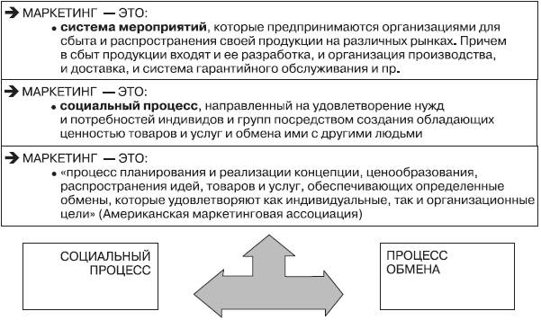 Таким образом, маркетинг представляет собой комплексное распределение и использование на практике комплекса научных методов и практических приемов разрешения проблем, связанных с установлением взаимовыгодных связей между субъектами обменных процессов в разных областях деятельности общества, которые способствуют достижению поставленных целей всех участвующих в данном процессе.