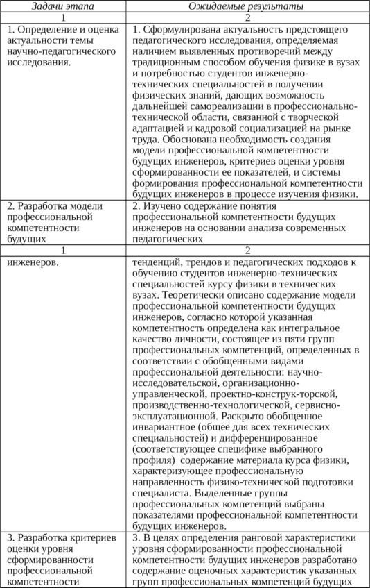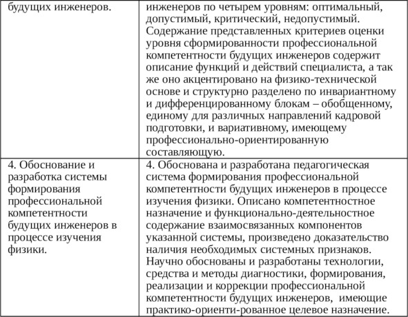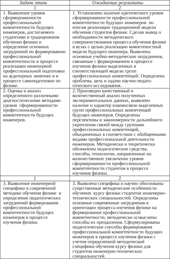 – разработка и апробация функционально-деятельностных технологий формирования профессиональной компетентности будущих инженеров в процессе изучения физики, инвариантно-дифференцированных с учетом специфики профессиональной инженерной подготовки; оценка эффективности их применения в соответствии с особенностями контингента студентов и тематической профессиональной специализацией изучаемых разделов курса физики;