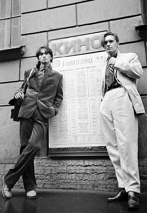«Кстати, у меня на хате происходила премьера первой цоевской песни „Мои друзья всегда идут по жизни маршем“ в 1981 году… Это еще было даже до „Гарина и гиперболоидов“… Ко мне тогда завалилась вся тусовка во главе с Андрюхой, Витей, Артемом и т. д., предки откровенно о…ли…[9] Один панк по кличке Ленин взял пионерский барабан, который у меня в углу лежал, и вот получился такой квартирник. Комната десять квадратных метров, можете себе представить, стоит письменный стол, диван, шкаф какой-то. Малюсенькая совсем комната, не в „хрущевке“, а в „брежневке“ даже. И там собралось человек пятнадцать, пара моих одноклассниц была, пили сухое вино, пиво. И вот тогда Цой исполнил песню „Мои друзья всегда идут по жизни маршем“. Потом я как-то приезжал к нему пару раз домой, мы обменивались записями. Он тогда жил у парка Победы. Мы же, собственно, все из одного Московского района, тогда еще города Ленинграда. Цой мне запомнился как спокойный человек, немного даже, можно сказать, вялый, такой весь в себе. Добрый он был, всегда откликался, когда что-то нужно было. Тогда все друг другу по домашним телефонам звонили, если что-то надо, никаких мобильных не было же. И он очень смешной был, мы же как бы панковская тусовка были: все с короткими стрижками, с булавками. А Витя носил тогда длинные волосы и говорил, что он хиппанк. С хиппи и панками вместе, в одном флаконе. Над чем мы очень сильно смеялись…»[10]