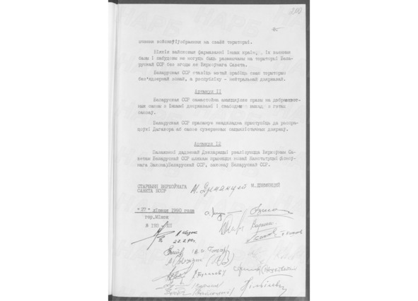 Now I want to share how I found the date of the signing of the Declaration of the Belarusian Soviet Socialist Republic’s separation from the Soviet Union. Here is the last page of the document: