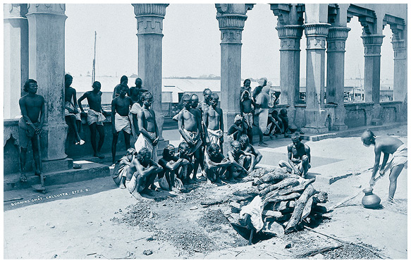 Подготовка погребального костра в Калькутте, Индия. Ок. 1890 г.