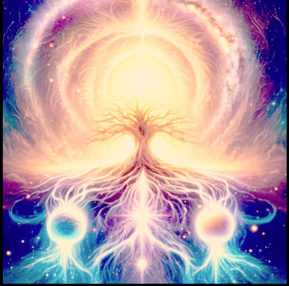 Наша Планета Миров была центром всего сущего, местом, где собирались все реки света, стекающиеся из бесчисленных вселенных. Это было место встреч и соединения миров. Здесь протекала Река Света, питающая каждую планету, каждую галактику и каждое существо. Мы с любовью наблюдали, как она несёт энергию и питает всё вокруг. Здесь находилось и Древо Вечности – огромное, с корнями, что впивались в свет, и ветвями, простирающимися к звёздам. Его кора сияла, словно древние письмена, напоминающие нам об истинном истоке всех миров.