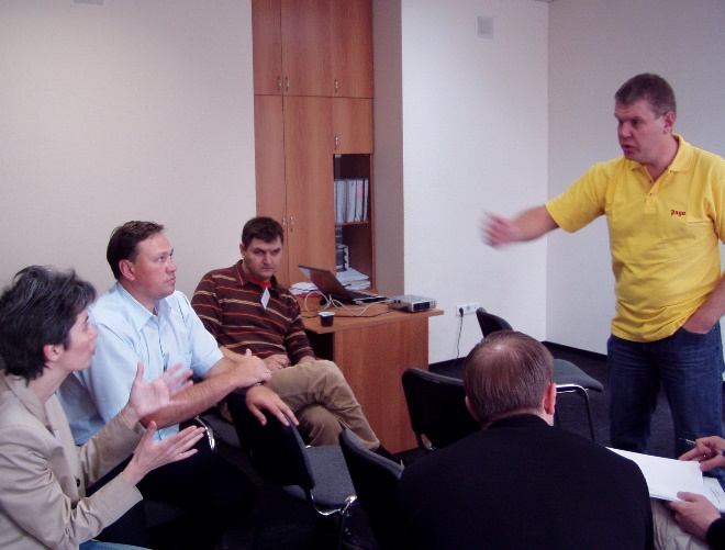– в условиях корпоративного тренинга методика может применяться для коррекции поведения менеджеров в отношении клиентов. В этом случае группа (участник) формулирует проблемную ситуацию в плане развития бизнеса, проблем с оплатой, возможных конфликтов и т.д.