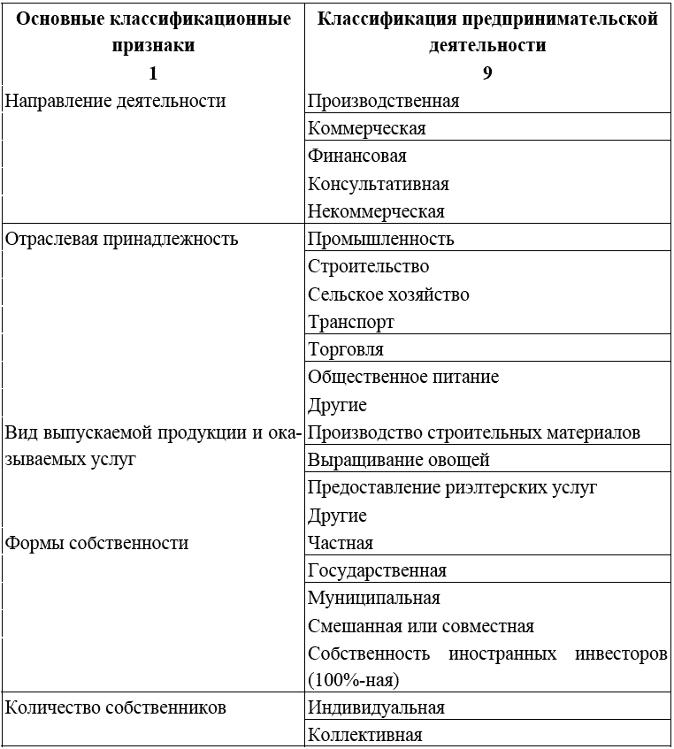 Все разнообразие предпринимательской деятельности можно классифицировать по основным признакам: