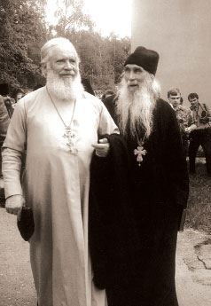 Архимандрит Кирилл (Павлов) и протоиерей Валентин Радугин на Клязьме, 1999 год