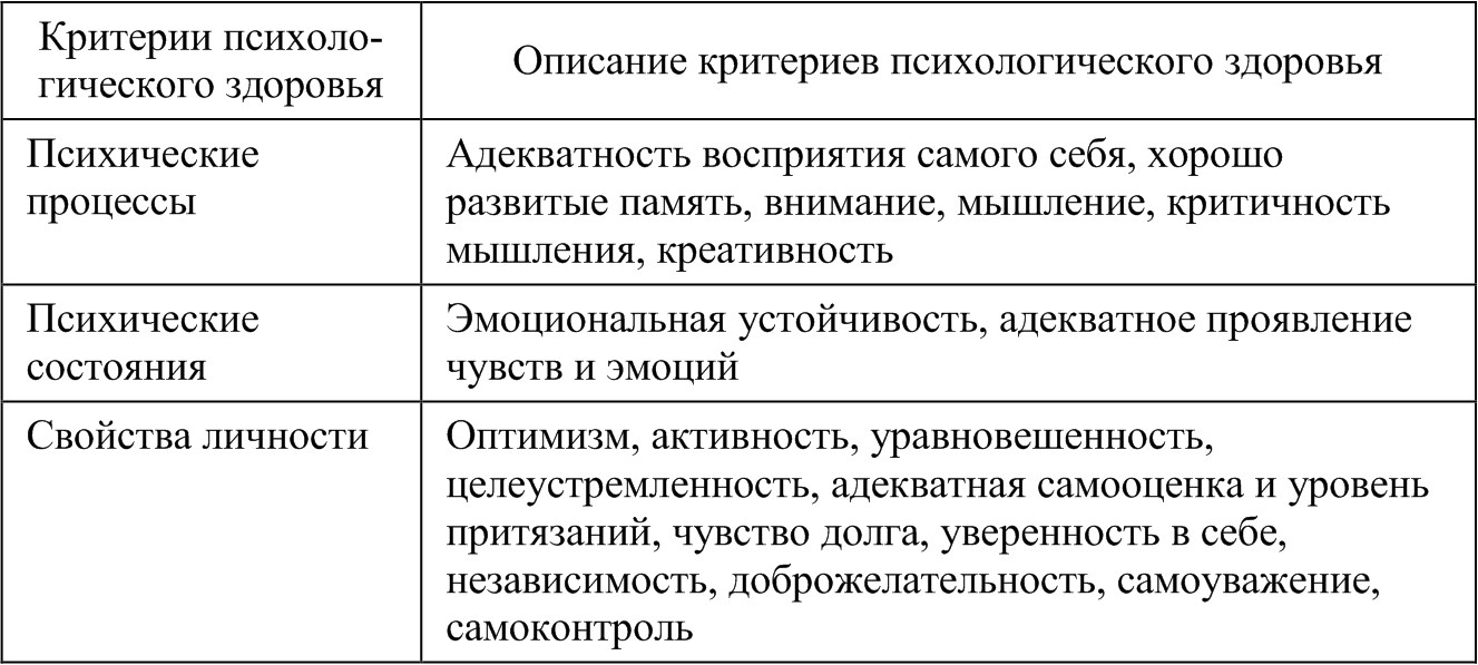 Критерии психологического здоровья