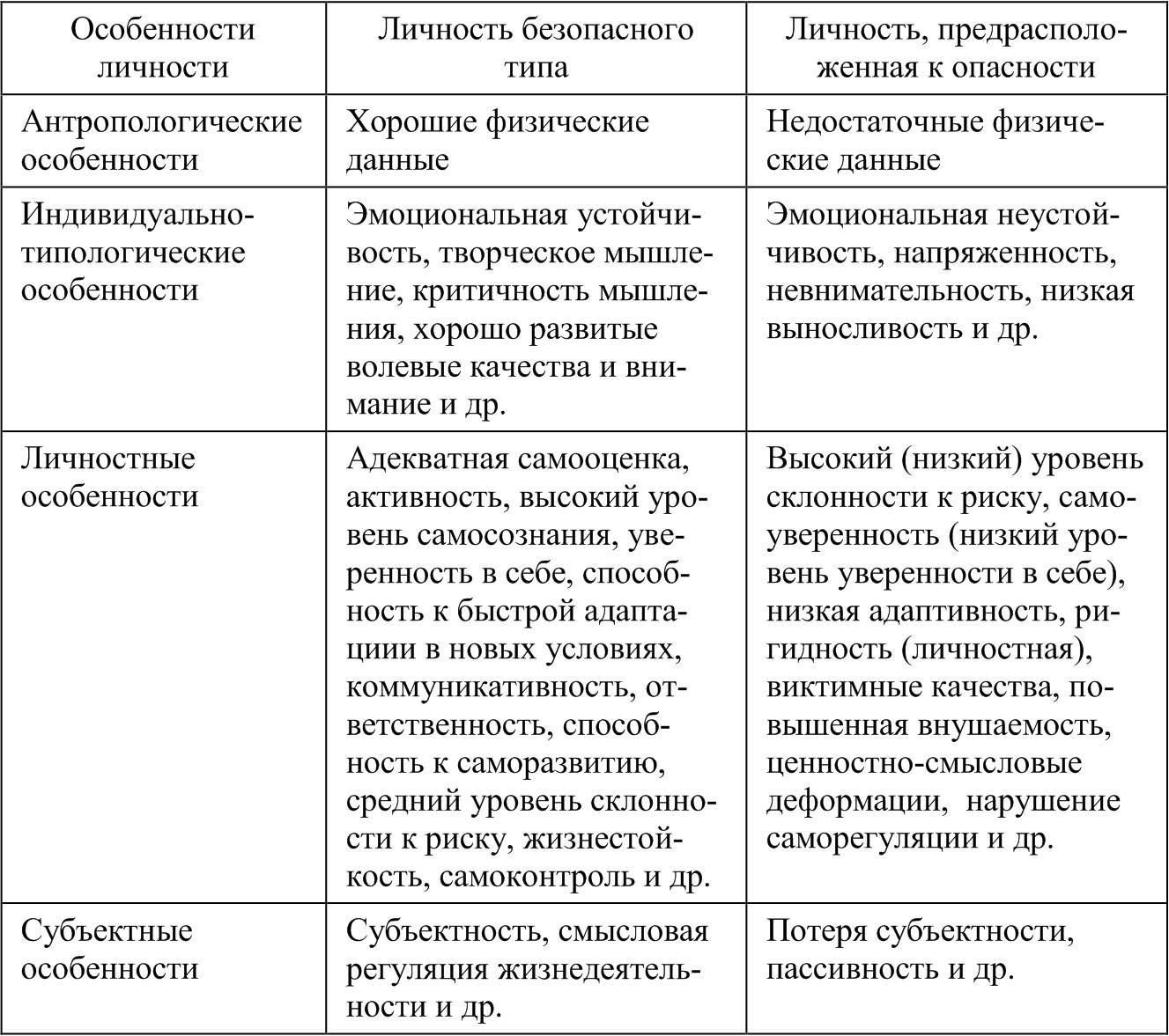 • знаниями индивидуально-психологических характеристик личности, «предрасположенной к опасности», и качеств личности, обуславливающих психологическую безопасность;