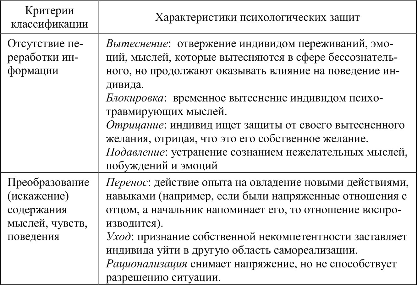 Виды психологической защиты