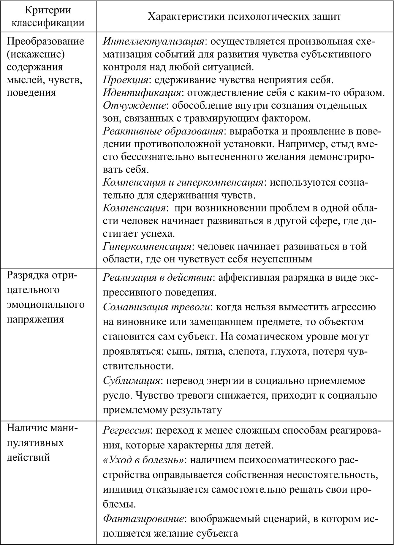 Таксономия внутриличностных психологических защит