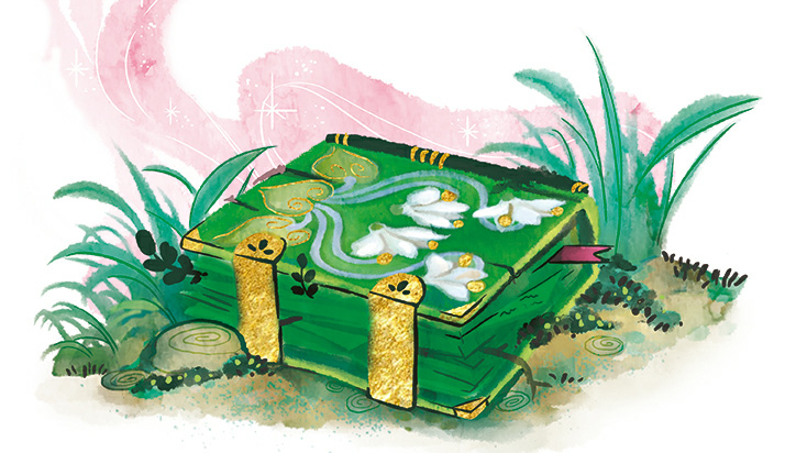 Баба-яга сделала вид, что согласилась с подругой. Но ночью незаметно похитила у той драгоценную книгу да сбежала из царства, боясь её гнева. Надеялась злодейка, что узнает из книги тайны природной магии. Но как только открыла её, то поняла, что все заклинания написаны растительными иероглифами. Крутила-вертела воровка книгу, заклинания разные шептала, чтобы распутать да прочитать непонятные значки. Не вышло ничего. Скучно стало, вот она книгу и забросила.