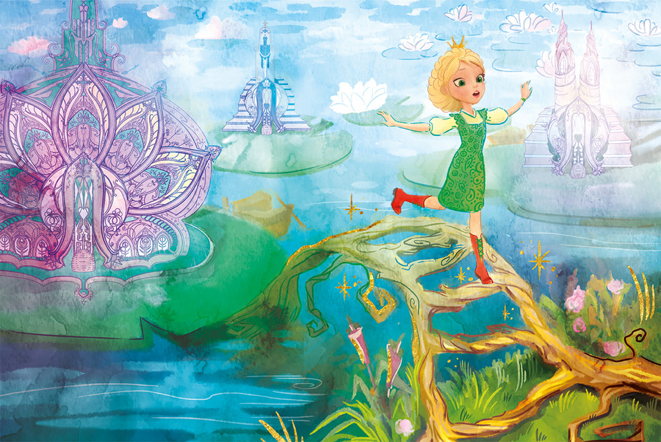Царевна подошла к краю листа. Недалеко от замка был большой бобровый остров, густо поросший лесом. Его отделяла от Василисы вода пруда. Однако стоило царевне подумать, что она хочет перейти на противоположную сторону, как с берега острова вытянулись стебли причудливого растения. Они сложились в мостик и легли к ногам девочки.