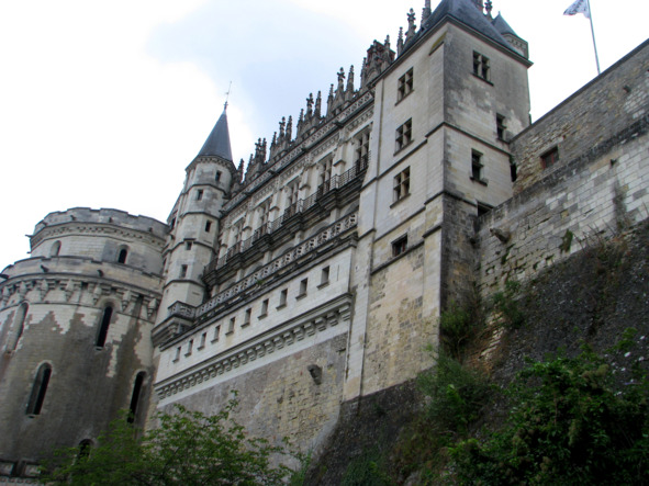 Зато из этих дальних походов короли везли итальянских архитекторов и художников, декораторов и краснодеревщиков. И некогда мрачные и угрюмые французские крепости стали превращаться в замки-дворцы с дивными парками и садами. Об этом мы говорили с женой, направляясь к очередному Замку. Мы ехали параллельно широкому руслу Луары по тихой, с редкими автомобилями, дороге, любуясь живописным пейзажем, как вдруг… (другое слово тут не подобрать) перед нашим взором вырос огромный, я бы сказал, гигантский замок, взмывший к небу на вершине крутого утеса. Причем массивные неприступные стены крепости, ставшие естественным продолжением скалистого плато, венчались изящными слуховыми окнами, ажурными балкончиками и жуткими мордами химер, выполняющих по совместительству функцию водостоков. Такому смешению стилей есть вполне логичное объяснение. Строился этот замок не год и не два… За это время не раз менялись и модные направления в архитектуре. То всем подавай готику, а то – бац! – да здравствуют каноны ренессанса. И все эти стили, начиная от самых древних, можно лицезреть, гуляя по самой первой резиденции французских королей, замку Амбуаз. Вообще-то говорят, крепость эту начали строить еще в 503 году, когда прославленный Хлодвиг, предводитель франков, заключил мир с вождем вестготов Аларихом. С этого союза на этом самом месте, как пишет Всемирная история, и началась Франция. Потом здесь много еще чего случалось. И заговоры, и подписание мирных договоров, и грандиозная церемония установления Ордена св. Михаила, когда пышно разодетые в золото и бархат синьоры поклялись жить по законам Церкви и Рыцарства, и казнь гугенотов, публично повешенных в назидание на балконе, который теперь так и называется – «Балкон заговорщиков»… А какие роскошные балы закатывали в Амбуазе королевские особы… с музыкой, танцами и фейерверками, равных которым не было во всей Европе.