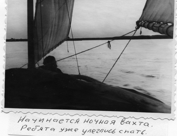 Перед шлюзами прицепились к каравану, и дошли на буксире до Углича. Дальше пошли под парусами, нормально чередуясь вахтами. Одна из моих вахт чуть не закончилась трагедией.
