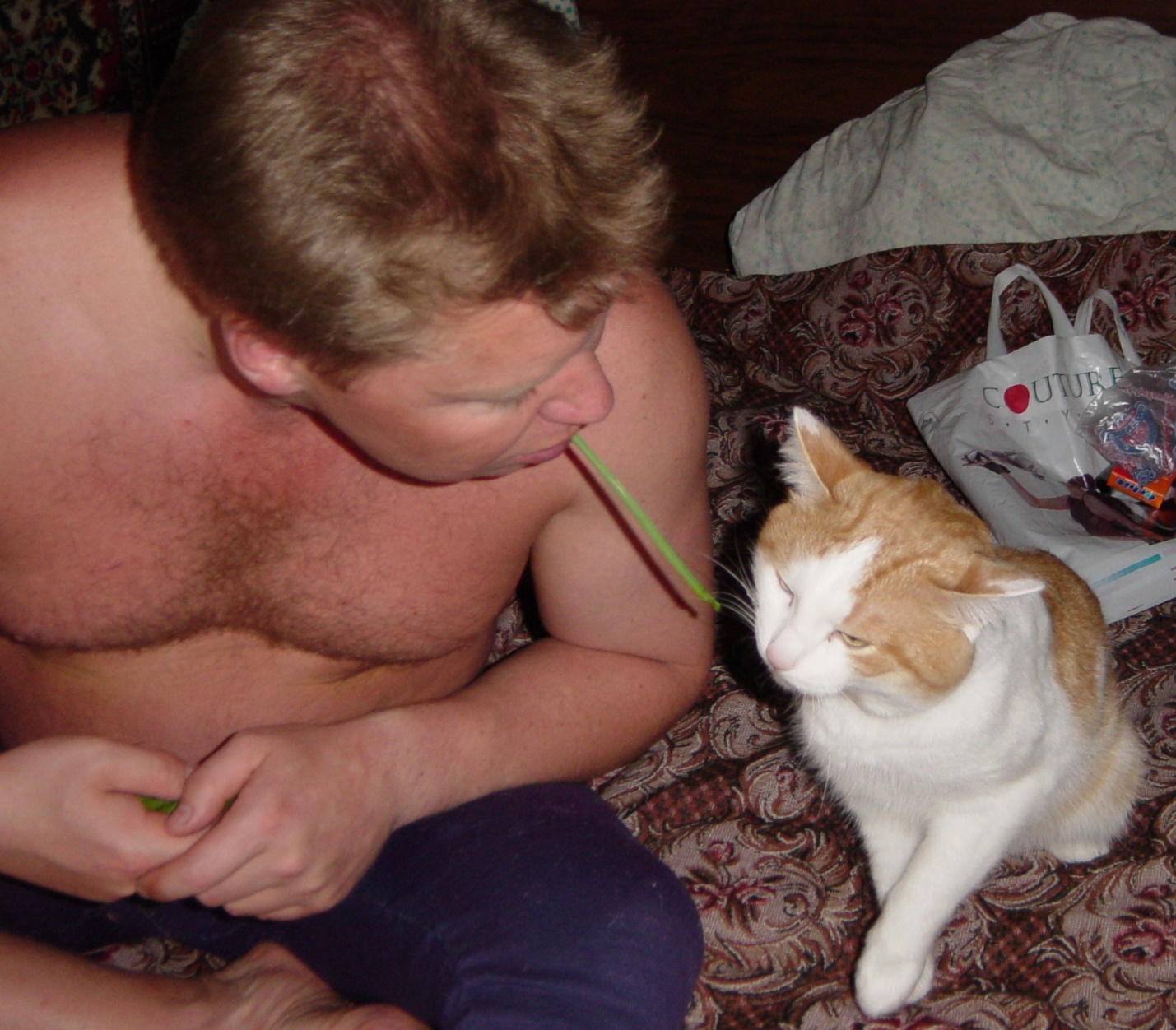 В итоге, хотите верьте, хотите нет, Кеша пошёл на поправку! Сначала потихоньку, а потом и в полный рост. Снова начал есть, даже с ещё большим аппетитом. Твёрдый шар в животе, бывший размером со здоровенный мужской кулак, стал рассасываться, уменьшаться, а потом и вовсе перестал прощупываться. Кот буквально за пару недель оброс мясом, и даже кое-где жирком. Шерсть залоснилась, а довольная мордуленция стала круглой, как в старые добрые времена. В общем, жизнь у обоих холостяков наладилась, вернувшись в прежнее русло.