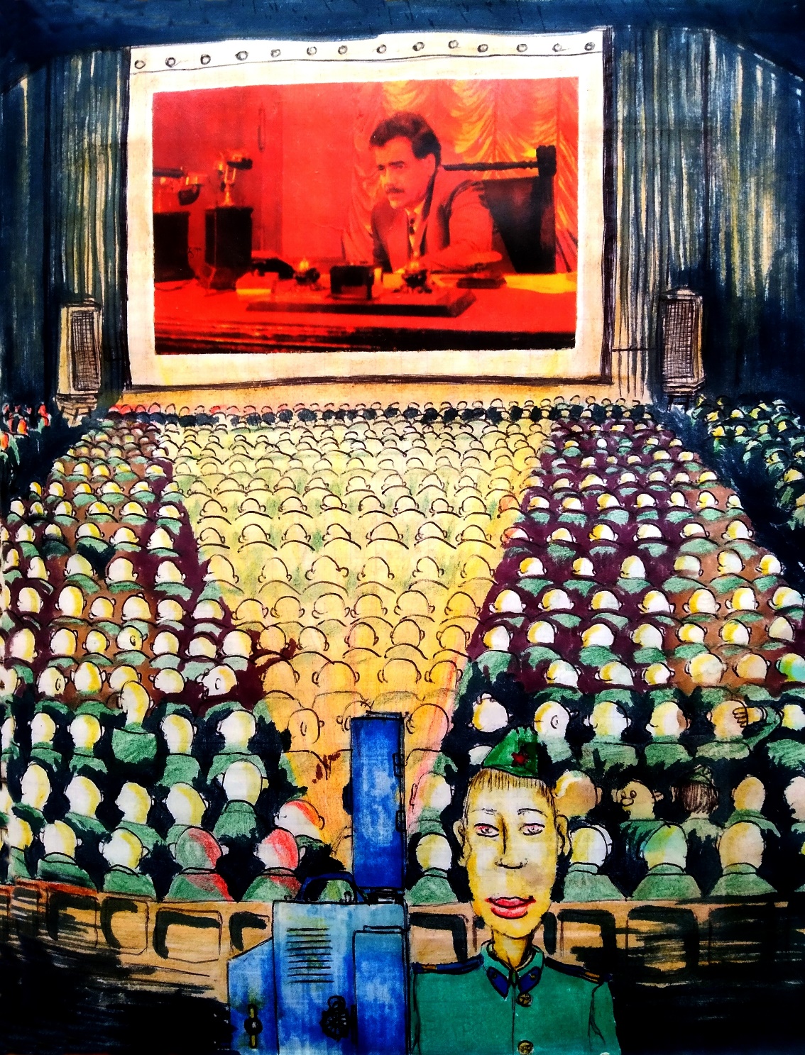Поднялся на сцену и, постоянно озираясь в зал, кое-как дорисовал транспарант. Не дожидаясь утра почти бегом вернулся в казарму, наконец-то забурившись на долгожданную койку.