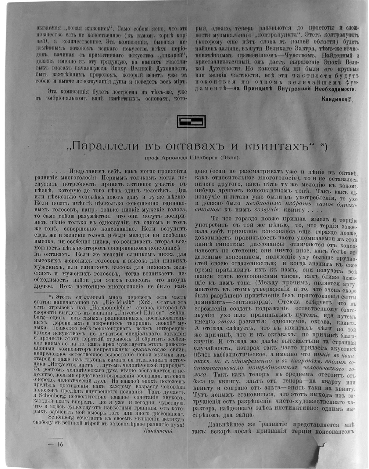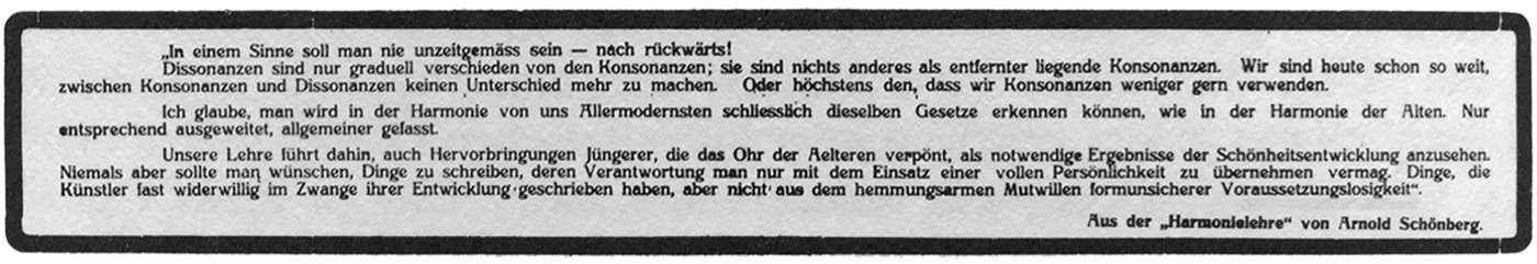 Ш.[Выдержка из «Учения о гармонии» Шёнберга – см. текст в рамке на с. 28. Этот отрывок был использован для наклейки на афише концерта в Мюнхене 26 января 1911 г.]