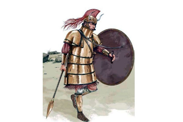 Микенский воин в тяжелых доспехах. Реконструкция.