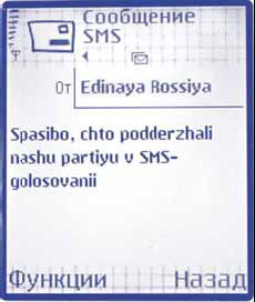 Март 2004 года. Андрей Пржездомский, директор Российского фонда свободных выборов: «Смысл состоявшейся акции по SMS-выборам президента – привлечь внимание молодежи к предстоящим выборам. Ведь акция рассчитана на молодых, активных и динамичных людей с определенным уровнем достатка. Она должна была расшевелить тех, кто, как правило, не ходит на выборы. Вместе с тем степень погрешности результатов такого голосования может быть очень высокой, поскольку владельцы мобильных телефонов – это незначительный и специфический слой нашего общества. Дать гарантию, что все люди, которые приняли участие в SMS-голосовании, 14 марта придут на избирательные участки, никто не может. Но если человек задумался, попытался высказать свою позицию, значит, в его мозгу уже происходит какой-то процесс».