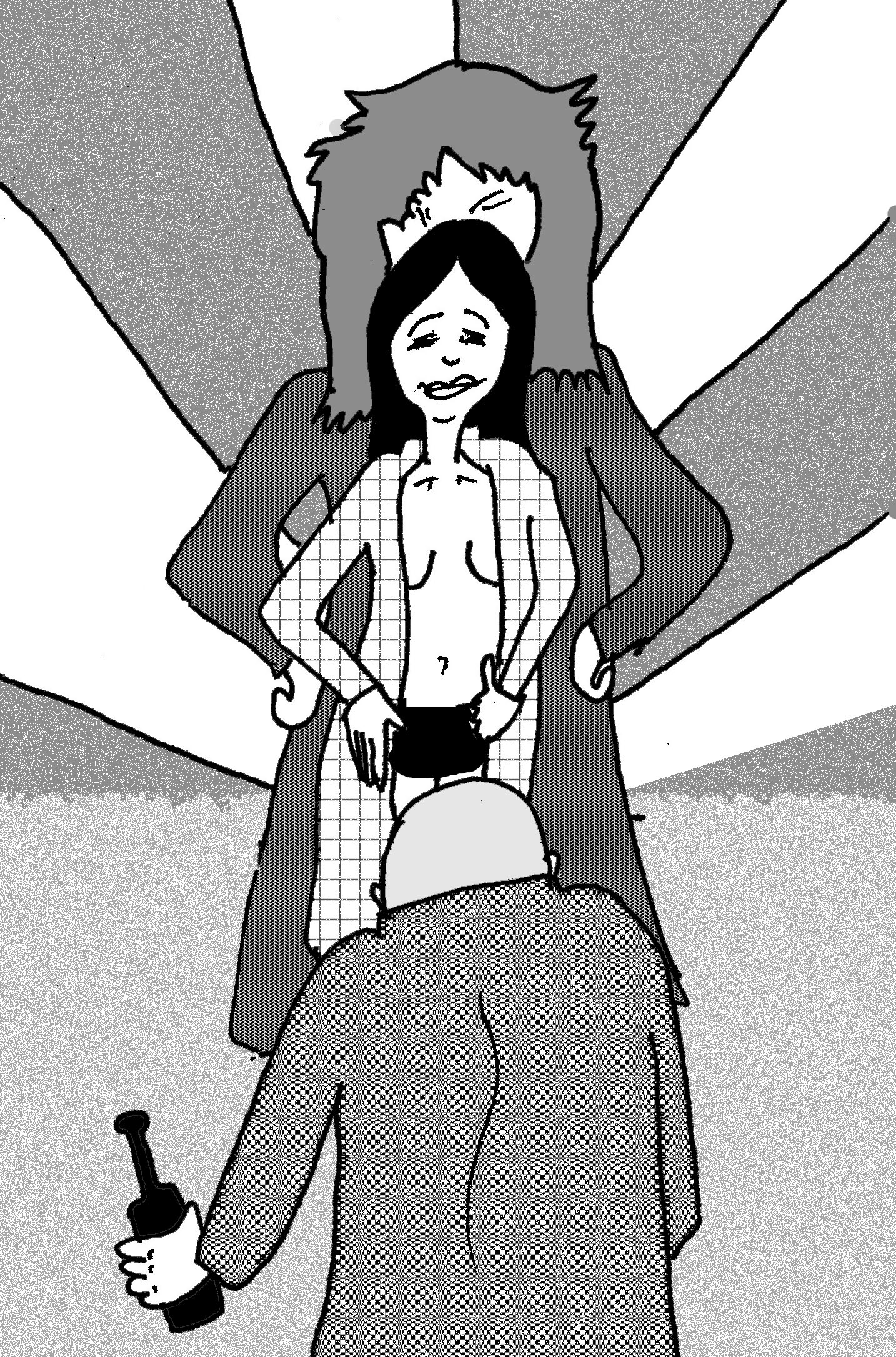 Мы зашли в магазин. Я купил бутылку водки. Пришли домой, выпили, закусили холодной, невкусной, резиновой пиццей. Она пошла в душ, я подошёл к окну. Внизу под фонарём стоял явно нетрезвый мужик в кепке и смотрел вверх. Увидев меня в окне, как-то обречённо вздохнул, повернулся и побрёл в темноту.
