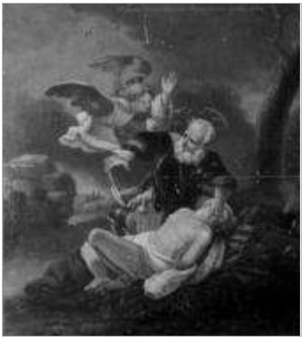 Мать благословила сына иконой, созданной безвестным саратовским художником XIX века по картине Рембрандта «Жертвоприношение Авраамом сына Исаака». В XIX веке в России были распространены гравюры с этой картины, служившие образцом иконописцу. Икона принадлежала матери Н.Г. Чернышевского. На оборотной стороне доски надпись, сделанная рукой Е.Е. Чернышевской: «Отче Аврааме, благослови в далекой стране детей наших, умоли Господа дать им всякую помощь и избавить от всех зол, напастей и болезней. 1848 года ноября 24».