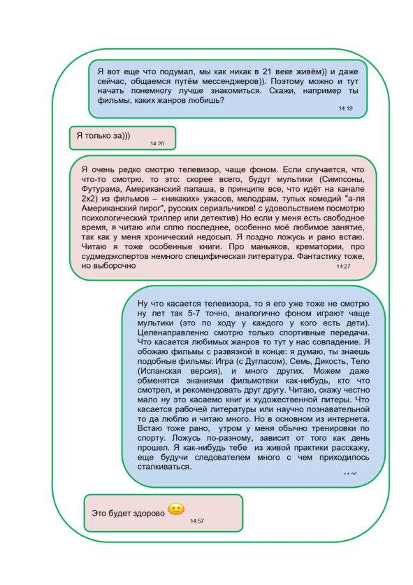 Дело все в том, что когда эта девушка появилась в его жизни и после того как он в нее начал влюбляться и испытывать чувства. Он неоднократно смотрел историю их переписок, всякий раз, когда он смотрел и читал эти сообщения, он будто возвращался в прошлое и испытывал те приятные эмоции, что его посещали. Естественно, у него на всю жизнь, в памяти, отложилась дата. Когда они впервые списались, и та самая дата их знакомства. 12 декабря 2019 г. именно в тот день она попала к нему на консультацию, а после того как она ушла, он дополнительно ей написал сообщение, дополнив некую недостающую информацию о которой он забыл в ходе живой беседы. Потому эта дата 12 декабря 2019 г. навсегда и четко отложилась у него в памяти.