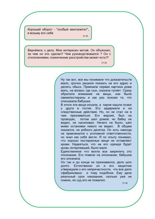 Дело все в том, что весь этот период Дмитрий выполнял всю работу без оплаты. Еще в самом начале, она, конечно, интересовалась у него суммой гонорара. Исходя из гонорарной практики, средняя стоимость ведения ее двух дел составляла оплату в сумме 35 000 рублей, да и то это не самая большая ценна, ряд адвокатов в городе, за подобные дела могли брать гораздо больше. Но когда она к нему обратилась, а также с учетом того, что в разговоре с ней Дмитрий понял, что Елена ищет приемлемый по оплате вариант, чтобы сэкономить, так как у нее ограниченный бюджет. Дмитрий сказал: «Я вам помогу за сумму в размере 20 000 рублей, оплачивать, возможно, частями по мере возможности». Елену устроил этот вариант, но в ходе текущей работы Елена как то спрашивала у Дмитрия, когда ей приступить к оплате, но он всякий раз говорил, что пока не нужно: «Как надо будет, я скажу».