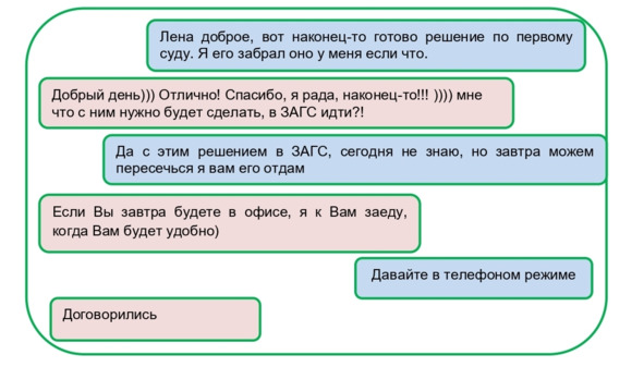 Когда закончилось одно из ее двух дел, и решение о расторжении ее брака вступило в законную силу, он ей написал чтобы договориться о встрече и отдать документ: