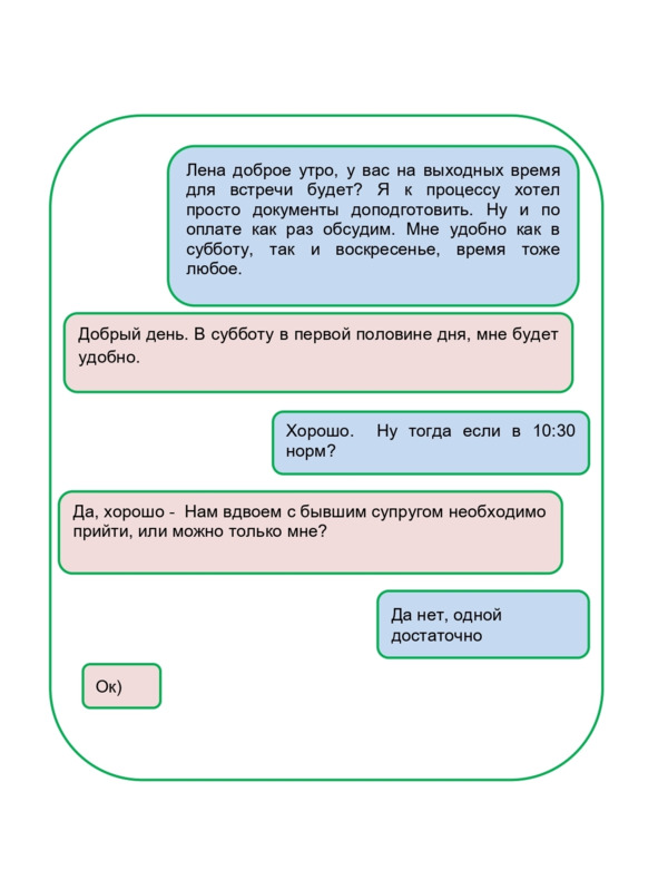 И вот, наконец, спустя пару месяцев были сняты определенные ограничения, введены послабления, работа судов возобновилась. Таким образом, возникла необходимость личной встречи Дмитрия с Леной.