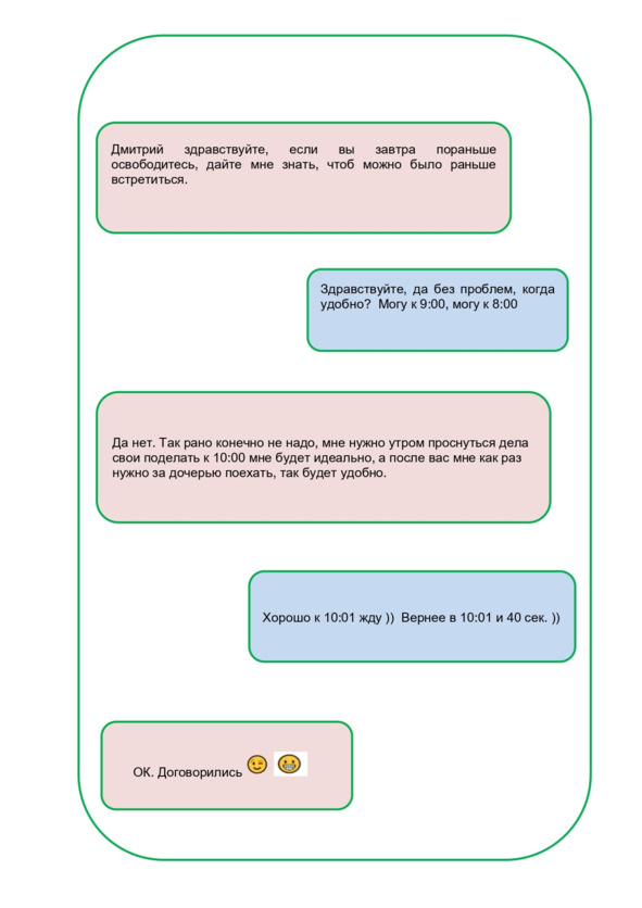 Спустя время, Дмитрий ей пишет дополнительное сообщение.