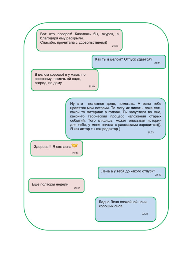 Поздним вечером, Дмитрию от Елены поступает сообщение и между ними возникает переписка.