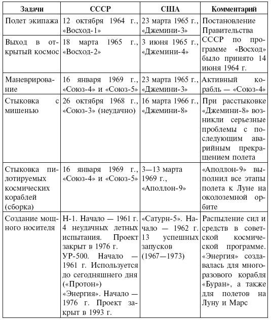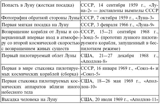 На пути к самому эффектному результату – достижению человеком Луны – были и «промежуточные финиши», на которых достигнуты важные приоритеты (см. табл. 3).