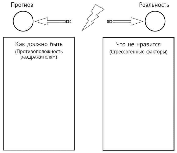 Поэтому наш прогноз и реальность оказываются разными. Представьте себе два полюса магнита – с одной стороны положительный прогноз, с другой – отрицательная реальность. Между разными потенциалами возникает напряжение, или, иначе говоря, стресс.