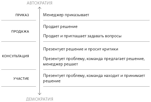 Чем ближе мы к «участию», тем выше должна быть вовлеченность сотрудников в работу, тем больше в работе они опираются на внутреннюю мотивацию, а не на внешнее давление, манипуляции или награды. Чем больше сотрудники вовлечены, тем лучше они работают, но тем сложнее ими управлять. С вовлеченными сотрудниками харизма уже не нужна. Пожалуй, она даже может помешать, как излишне красивый шрифт может отвлекать от содержания.