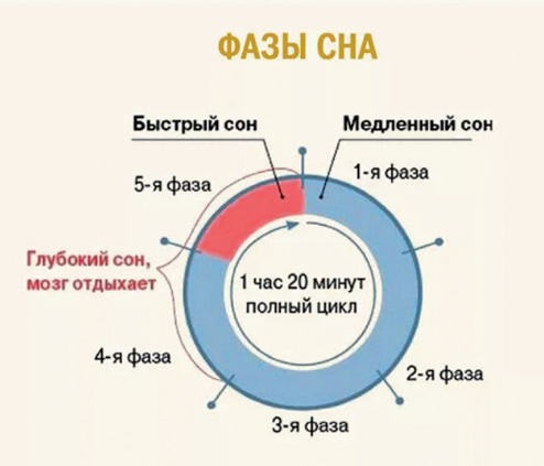 Считается, что смена фаз сна (медленный – быстрый) совершается через примерно равные промежутки времени, контролируемые внутренними биологическими часами организма, со средней длительностью – 90 минут.